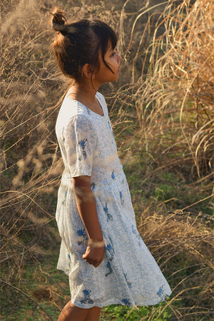Designed with care and crafted from luxurious cotton voile, the Sara Blue Scatter dress is an exquisite addition to your child's wardrobe. Featuring hand block printing and a contrast placket, this dress provides a stylish look, even in the summer heat. With its heirloom-quality, both you and your little one are sure to cherish it.
