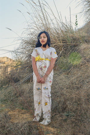Crafted from the finest cotton voile, with a comfortable fit and a classic button-up front, the jumpsuit features beautiful hand-block printed roses and a contrast belt to cinch the waist. Make your little one stand out in style with the Lea Jumpsuit.